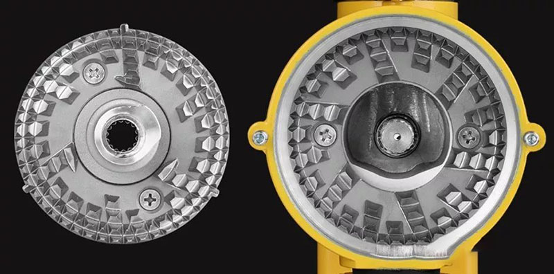 コーンナイフグラインダーは、コーンナイフディスクを底部に配置し、外輪ナイフディスクを使用して研削する機械です。コーヒー豆が上から落ちると、コーンナイフディスクの回転によってコーヒー豆が下に引っ張られ、粉砕作用が生じます。コーンナイフは平ナイフに比べて研削速度が速く、発熱が低く、均一性と精度が低いため、製品の味がより豊かになります。 (コーンカッターの方が均一性が良いという話もありますが、実際に使ってみると同レベルの研削盤のフラットカッターの方が均一性が若干良いと思いがちです。詳しくは価格に関係するかもしれません。)