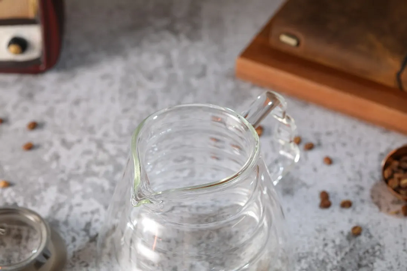 の二重-層コーヒーシェアリングポット段階表示が付いています。抽出のみに関して言えば、電子秤を使用しない場合は、目盛付き容器が計量機能を果たします。シェア用ポットのほとんどは透明な素材でできており、コーヒー抽出プロセスをより直感的に理解できます。ポット本体は二重断熱、耐熱ガラス、手吹きです。現在、ほとんどすべての手洗い型シェアポットは高ホウケイ酸ガラス素材で作られています。通常のガラスポットと比較して、高ホウケイ酸ガラスは高温に対する耐性が優れています。高品質の高ホウケイ酸ガラスは厚みが均一で透明度が非常に高いです。材質に関しては、手洗いやポットの共有には高ホウケイ酸ガラス素材が好ましい選択です。高温耐性と安全率が比較的高いため、使用後に冷水にさらされても爆発せず、光透過率が高く、臭いもありません。