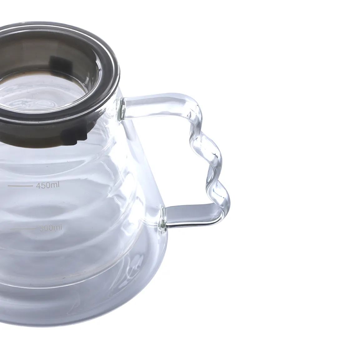 手作りの吹き込みは難易度を高め、職人技のレベルを向上させ、断熱性を高めます。ポット本体には目盛りが刻印されており、コーヒーの量をコントロールしやすくなっています。ガラスの波型ハンドルデザインは指のグリップに適しています。